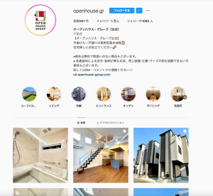 主に都心の新築の戸建て仲介業を展開している会社になります。新築ならではの綺麗な外観や室内の設備、キッチンなど魅力的な写真をたくさんアップされていて正に主婦のハートを掴むような投稿をされています。こんな家に住めたらいいなぁと思わせてくれる投稿が実際に内覧希望などの繋がっていると思います。