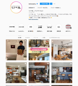中古マンションのリノベーションを手がける企業様です。すごく綺麗にリノベーションされたお部屋の様子を写真でアップされており、Instagramのライブ機能まで活用されています。10万人フォロワーを超えており正にInstagram運用に成功していると言えるでしょう。