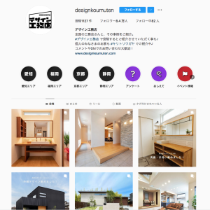 次は工務店さんのご紹介です。デザイン工務店様のInstagramでは全国の工務店さんの施工事例のご紹介をされています。デザイン工務店とハッシュタグをつけて投稿するとご紹介されることがあるそうです!お金をかけず広告効果が得られるかもしれないのでやらない手は無いですね!